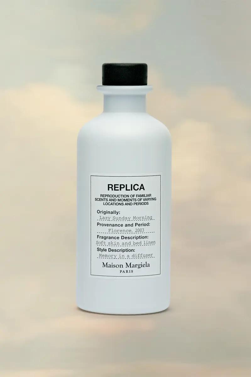 Il diffusore profumato Replica Lazy Sunday Morning evoca la morbida sensazione di lenzuola di lino appena lavate in una mattina di sole. Pulita, fresca e confortante, la luce immacolata riscalda delicatamente la pelle. Con una fragranza floreale muschiata, il ricordo di lenzuola fresche viene ricreato con mughetto e muschi bianchi. La calda luce del sole è presentata attraverso iris e semi di ambretta. La diffusione del profumo è continua per 4 mesi senza bisogno di alcun intervento e l’intensità della diffusione può essere regolata modificando il numero di bastoncini. Formato 185 ml. La collezione Replica riunisce fragranze iconoclaste che hanno il potere universale di evocare momenti preziosi. In linea con l’approccio minimalista della Maison, il diffusore Replica è semplice ma sofisticato. Un’etichetta che ricorda le etichette utilizzate su abiti e accessori per la collezione moda Replica, identifica ogni fragranza.