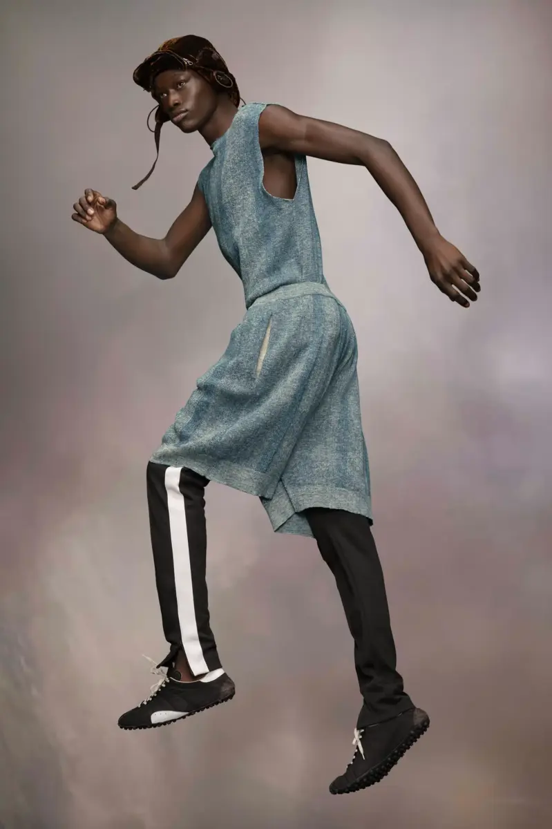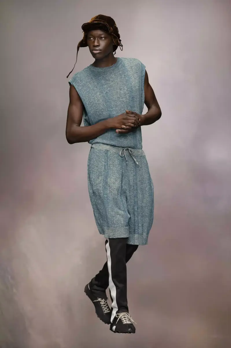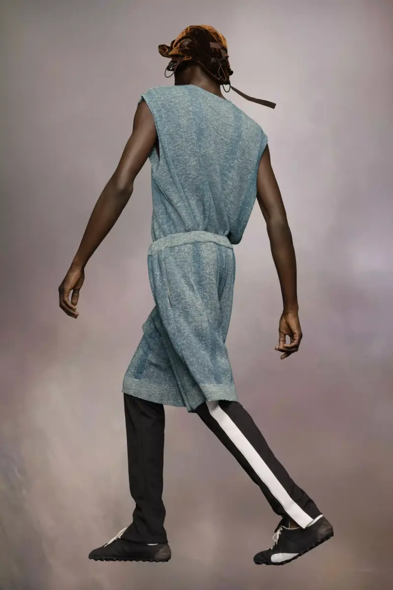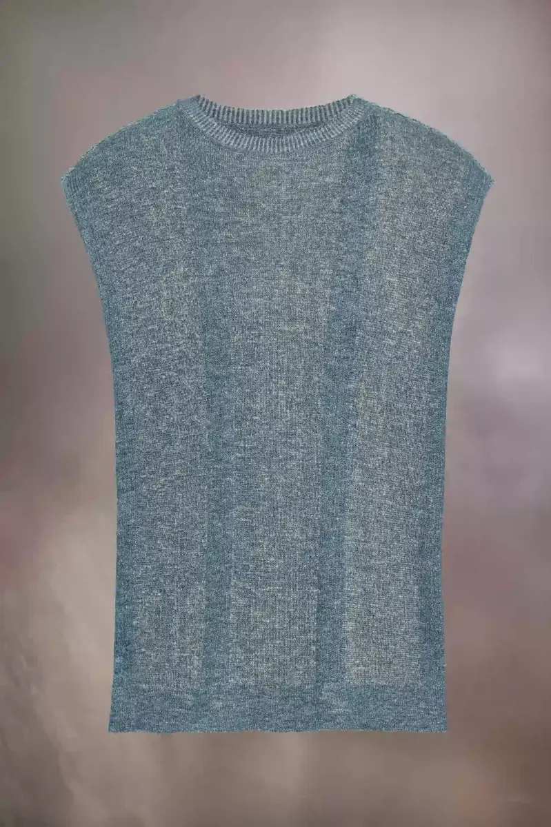 Con una delicata colorazione chiné, la canotta in maglia è realizzata in misto lino e cotone e rifinita con un delicato effetto rigato. Con una vestibilità comoda e girocollo, è caratterizzata da bordi a coste, maniche ad aletta e una silhouette lunga. La firma di Maison Margiela, i quattro punti, è visibile sul retro, l’opposto di un’etichetta.
