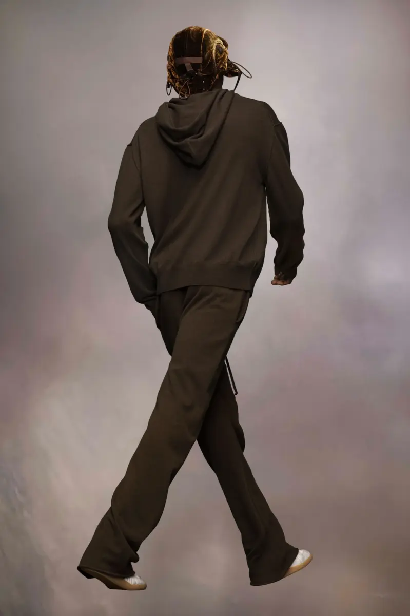 Realizzata in morbida lana cashmere, la felpa con cappuccio e zip è caratterizzata da una tasca frontale Décortiqué, che aggiunge consistenza e volume alla parte anteriore del maglione. È caratterizzata da cuciture sulle spalle scese per un look rilassato, bordi a coste e coulisse al collo. La firma di Maison Margiela, le quattro cuciture, è visibile sul retro, l’opposto di un’etichetta.