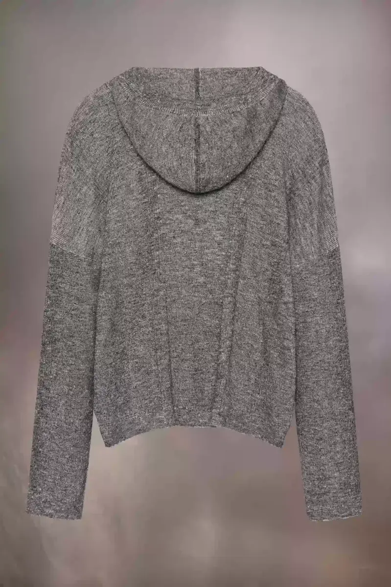 Felpa con cappuccio in lino e poliestere con coulisse