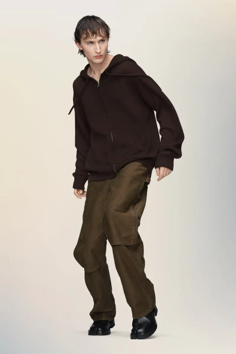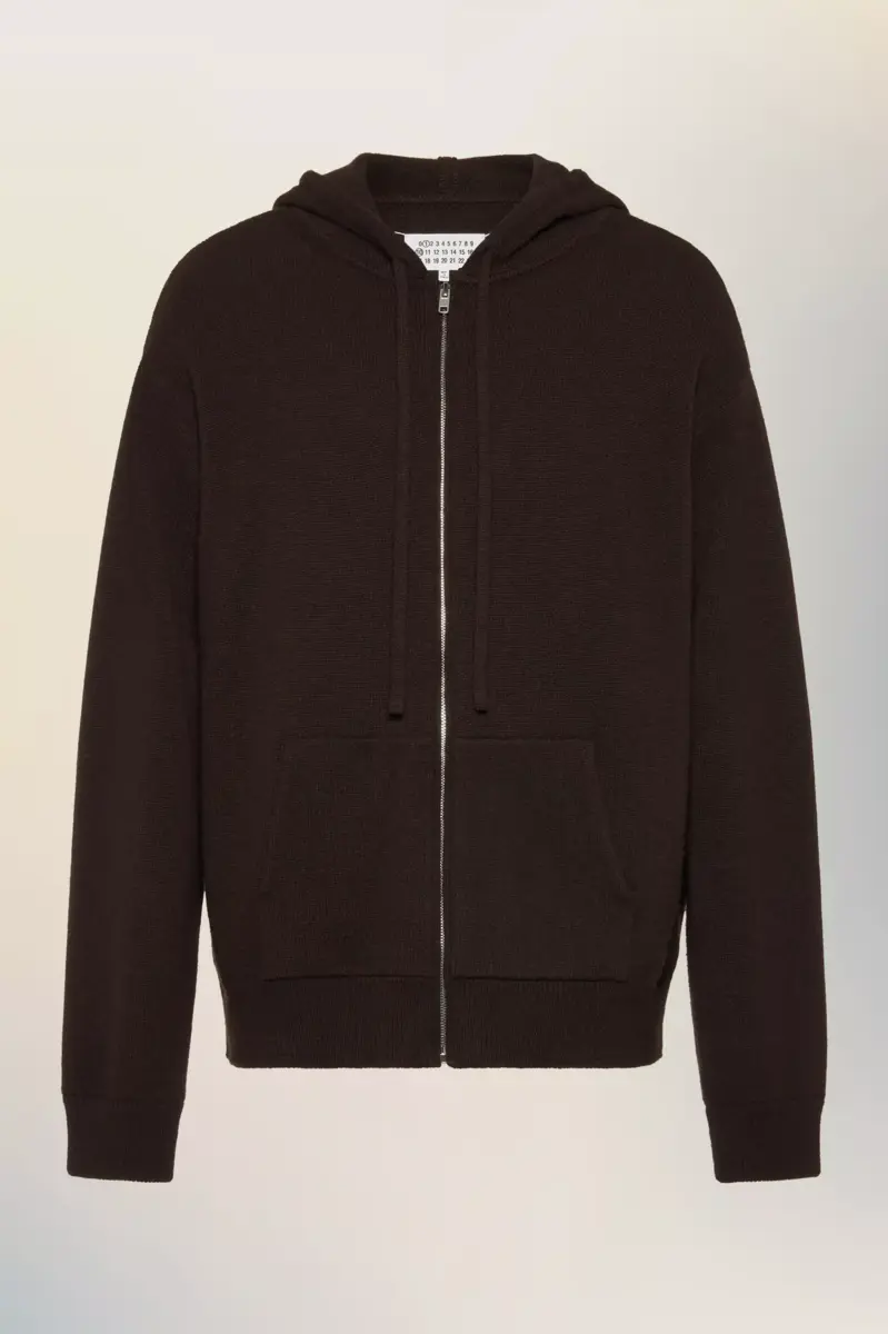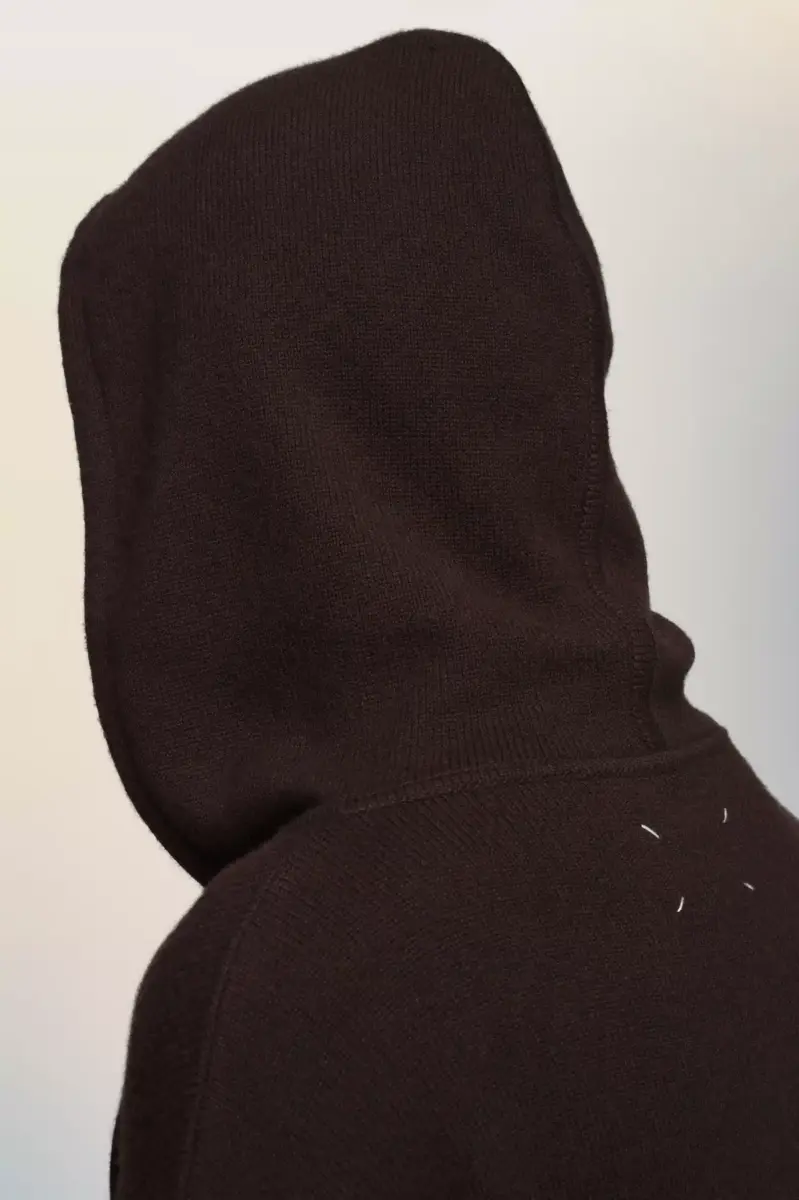 Questo morbido maglione con cappuccio e zip in cashmere ha una vestibilità comoda. Orlo e polsini a coste incorniciano la silhouette, mentre tasche applicate e cappuccio con coulisse completano il design. La firma di Maison Margiela, le quattro cuciture, è visibile sul retro, l’opposto di un’etichetta.
