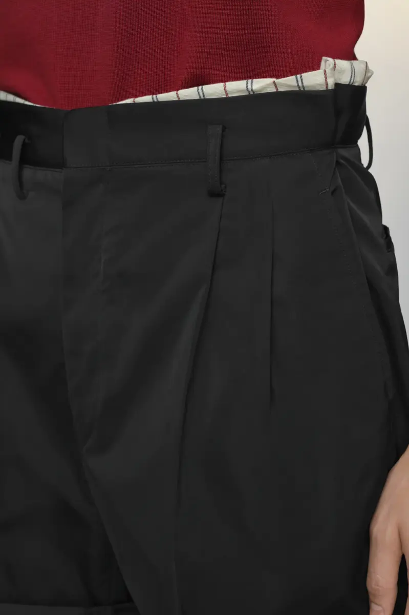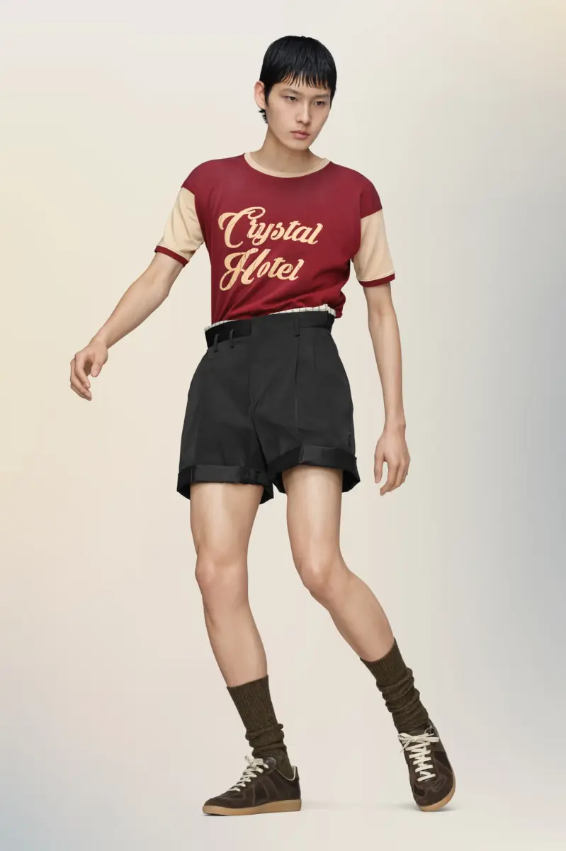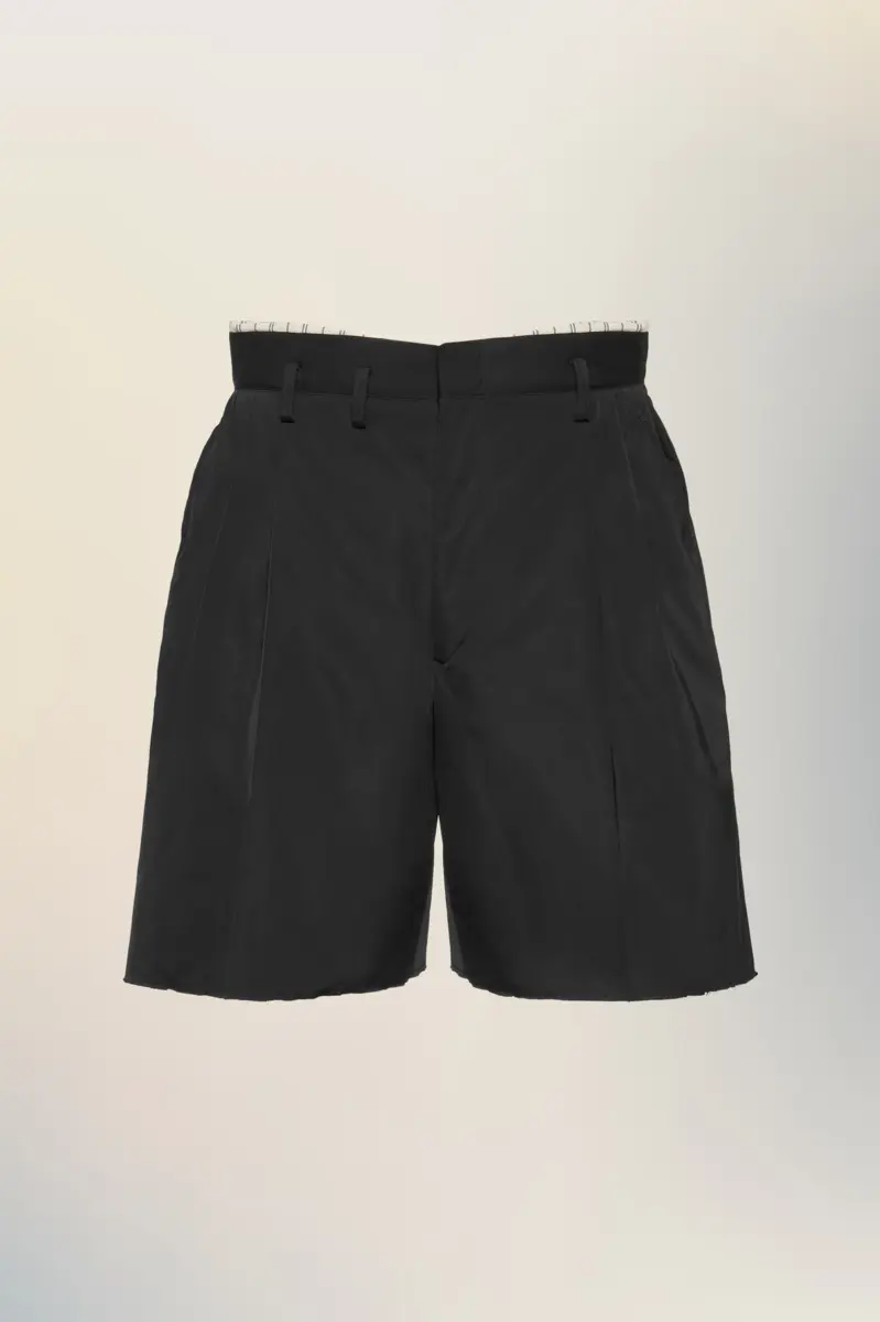 Realizzati con pieghe pulite e orli grezzi, questi shorts offrono una discreta versatilità. Una fodera a righe è parzialmente esposta in vita, una rivelazione intenzionale che riflette il gioco della Maison con l’anonimato della fodera. La firma di Maison Margiela, le quattro cuciture, appare sul retro; l’opposto di un’etichetta.
