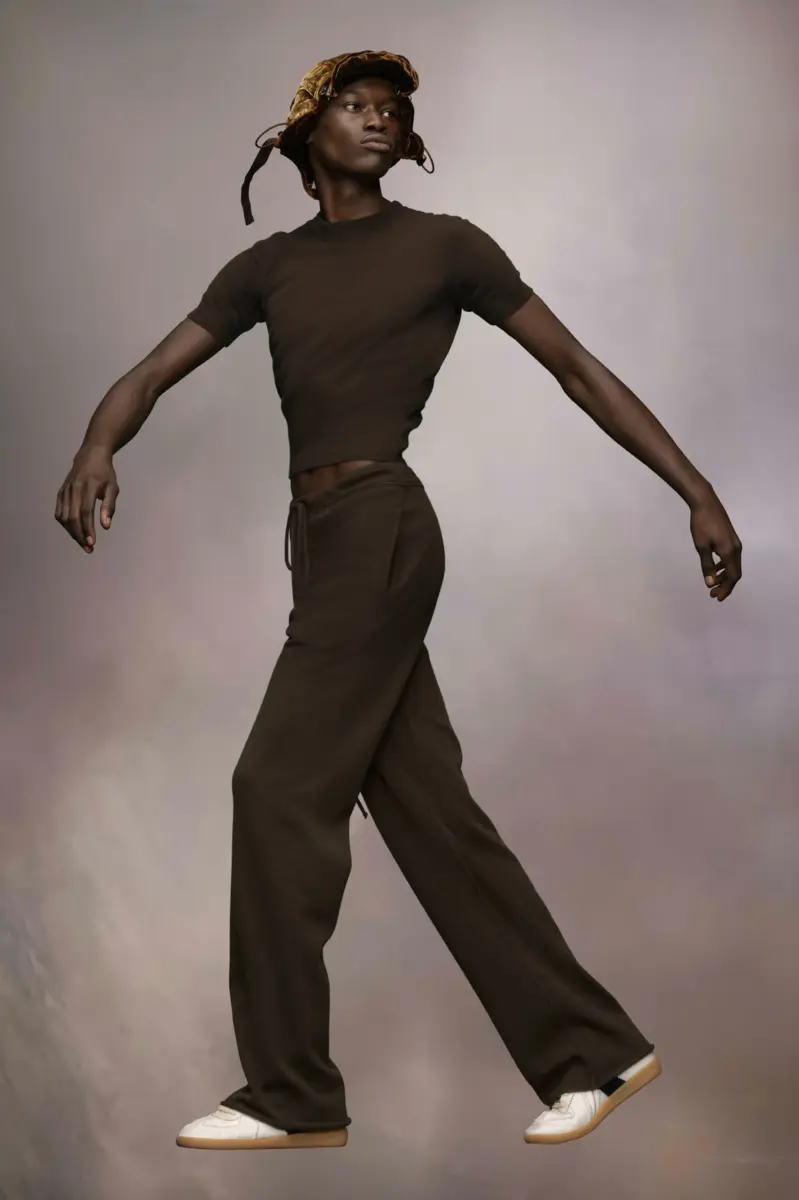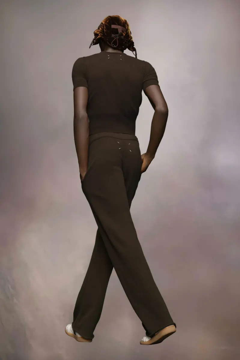 I pantaloni della tuta sono realizzati in un morbido misto lana e cashmere. Pensati come abbigliamento da casa, presentano una cintura a coste con coulisse extra lunga per una vestibilità regolabile. I pantaloni sono dotati di tasche laterali e gamba dritta, che si arriccia leggermente sul pavimento per un look rilassato. La firma di Maison Margiela, le quattro cuciture, è visibile sul retro, l’opposto di un’etichetta.