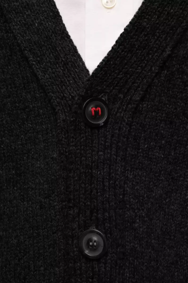 Chiusura con bottoni in corno e ricamo M rosso