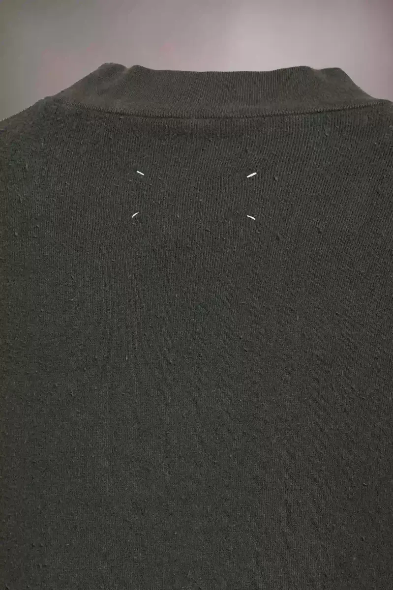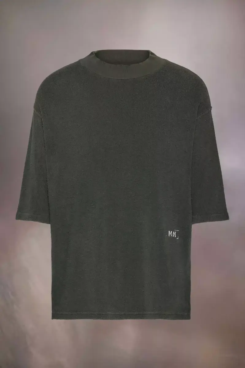Realizzata in cotone con finitura used, la T-shirt oversize ha un girocollo e presenta il logo MM stampato sul lato. La scollatura è sfrangiata per accentuare l’aspetto vissuto. La firma di Maison Margiela, le quattro cuciture, è visibile sul retro, l’opposto di un’etichetta.