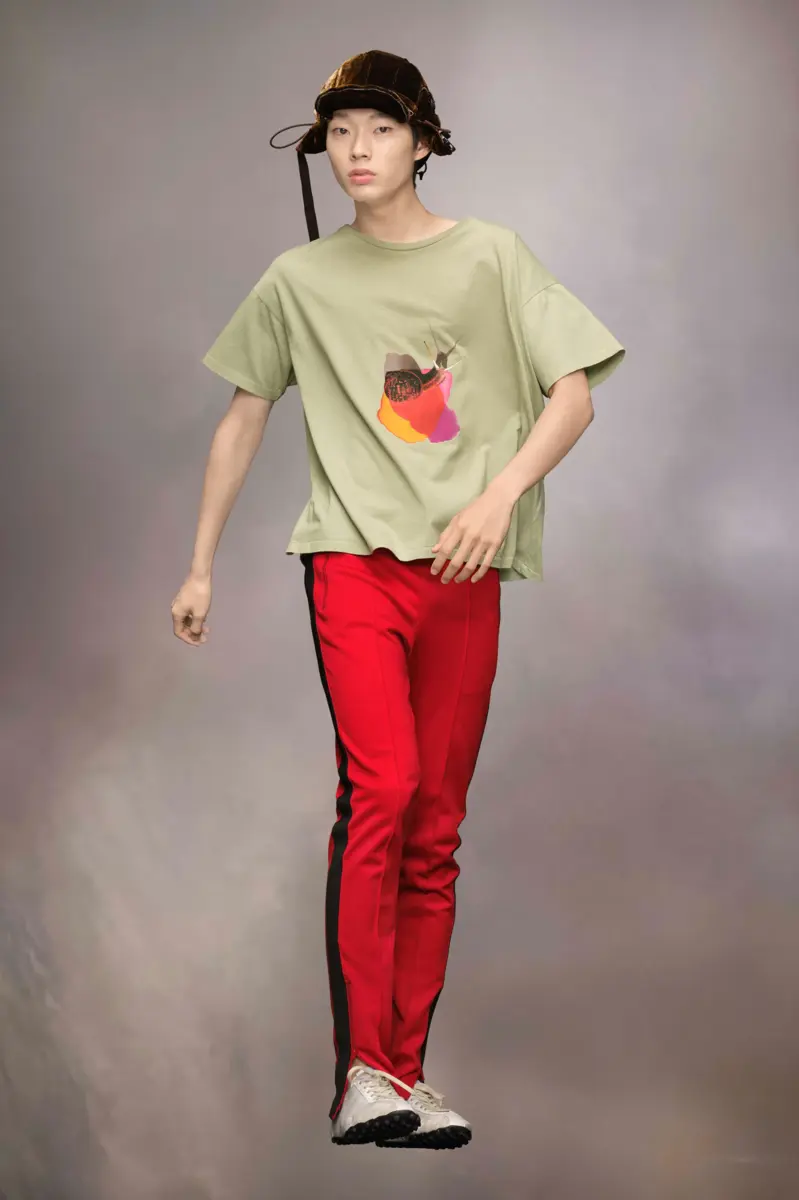 La T-shirt oversize è realizzata in cotone con cuciture sulle spalle scese e scollo rotondo per un look casual. La parte anteriore presenta la stampa a chiocciola di Maison Margiela con un aspetto floreale e pittorico e un trattamento in ombra scura. La firma di Maison Margiela, i quattro punti, è visibile sul retro, l’opposto di un’etichetta.