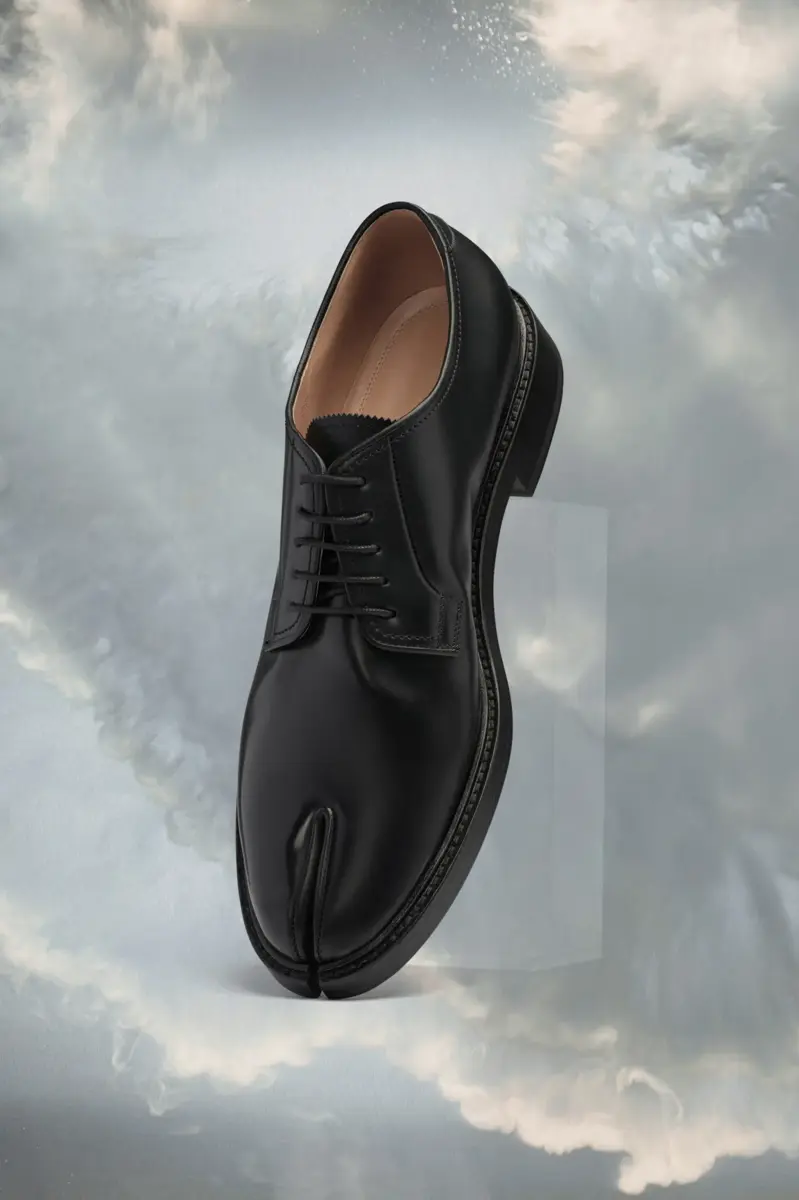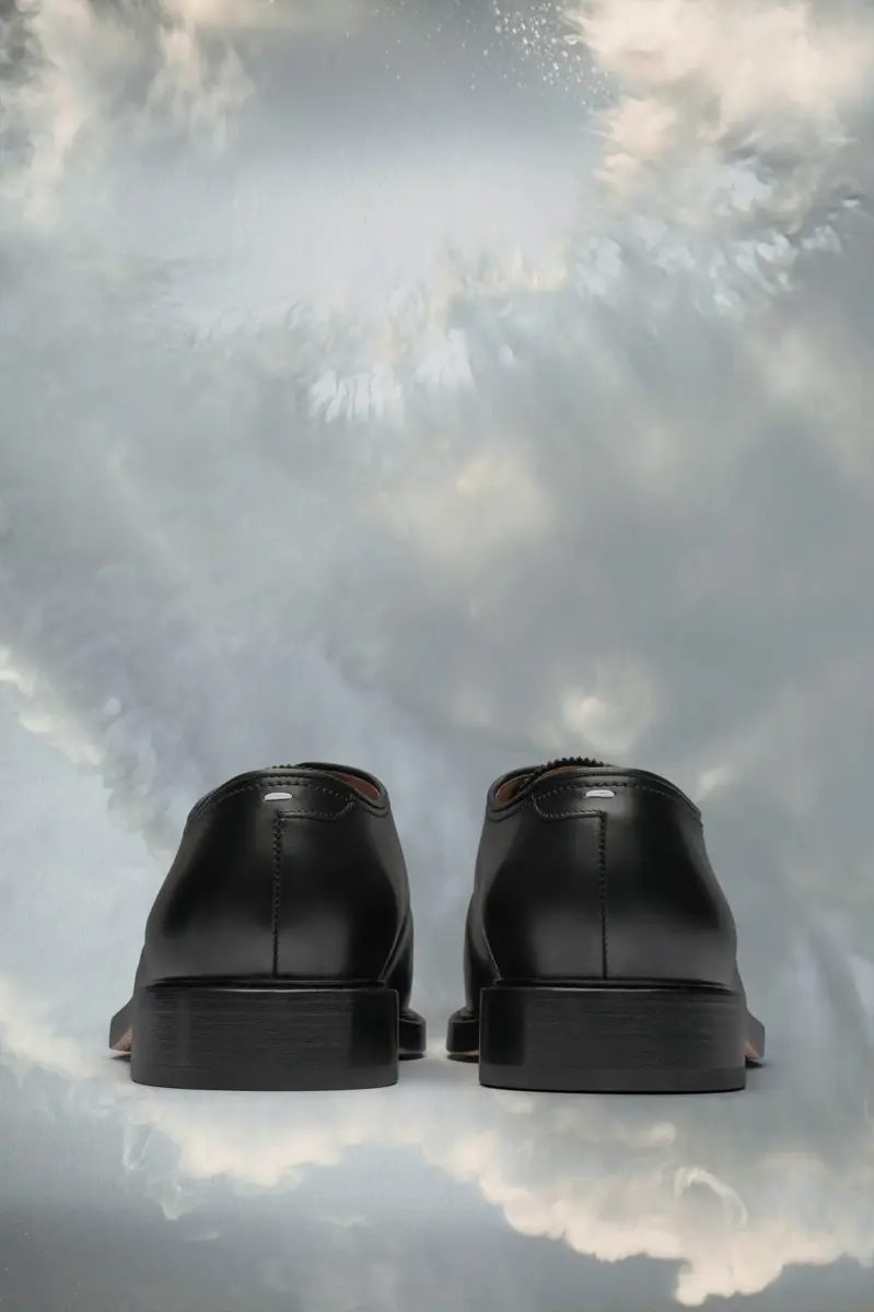 Le scarpe stringate in pelle spazzolata presentano una punta Tabi a mandorla, una nuova versione dell’iconico modello, e sono foderate con una suola in pelle di vitello. Sul retro è presente la cucitura bianca distintiva di Maison Margiela. La punta divisa Tabi si ispira al tradizionale calzino giapponese del XV secolo che porta lo stesso nome, lanciato per la collezione di debutto della Maison nel 1989. Cattura lo spirito avanguardista e insubordinato della Maison e si presenta come un classico della tradizione, continuamente esplorato in ogni collezione.