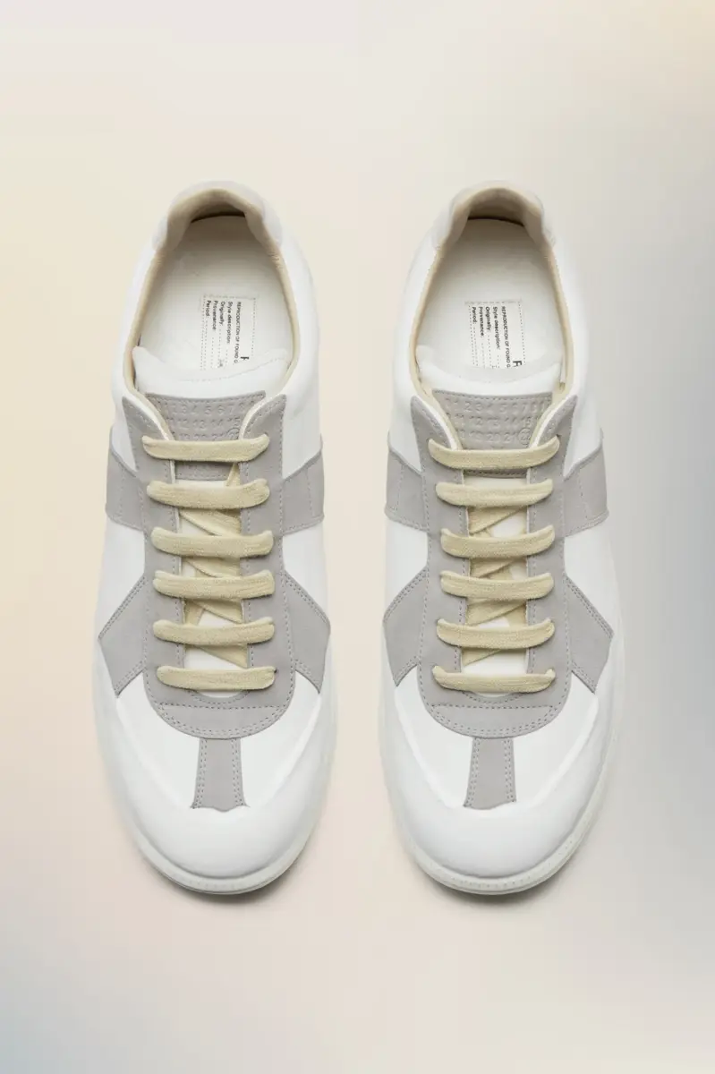 Le sneakers Replica Glow sono realizzate in morbida pelle di vitello e suede, rifinite con un trattamento luminescente alla base che si illumina al buio. Le iconiche sneakers Replica della Maison si ispirano alle scarpe sportive austriache degli anni Settanta. I dettagli delle Replica vengono continuamente rielaborati in linea con le ispirazioni della stagione.