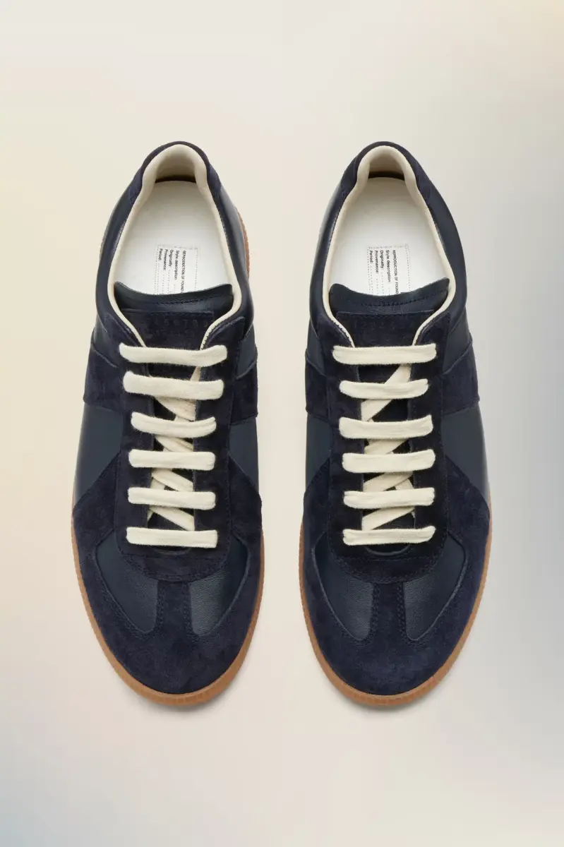 Le sneaker Replica in nappa e suede con suola color miele. Le iconiche sneaker Replica della Maison si ispirano alle scarpe sportive austriache degli anni Settanta. I dettagli delle Replica vengono continuamente rielaborati in linea con le ispirazioni della stagione.
