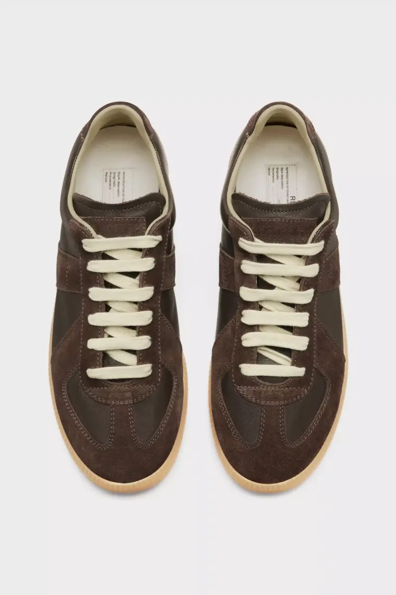 Le sneaker Replica in nappa e suede con suola color miele. Le iconiche sneaker Replica della Maison si ispirano alle scarpe sportive austriache degli anni Settanta. I dettagli delle Replica vengono continuamente rielaborati in linea con le ispirazioni della stagione.